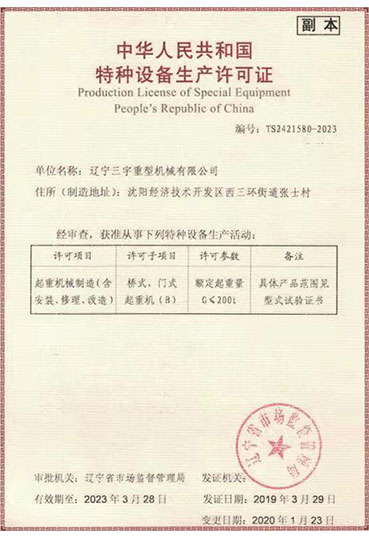 - 三宇人將以“創(chuàng)三宇國(guó)際品牌,興中華民族工業(yè)”為己任,努力奮斗,不懈奮斗,加快發(fā)展,繼續(xù)譜寫(xiě)中國(guó)起重機(jī)械制造史上的新篇章。